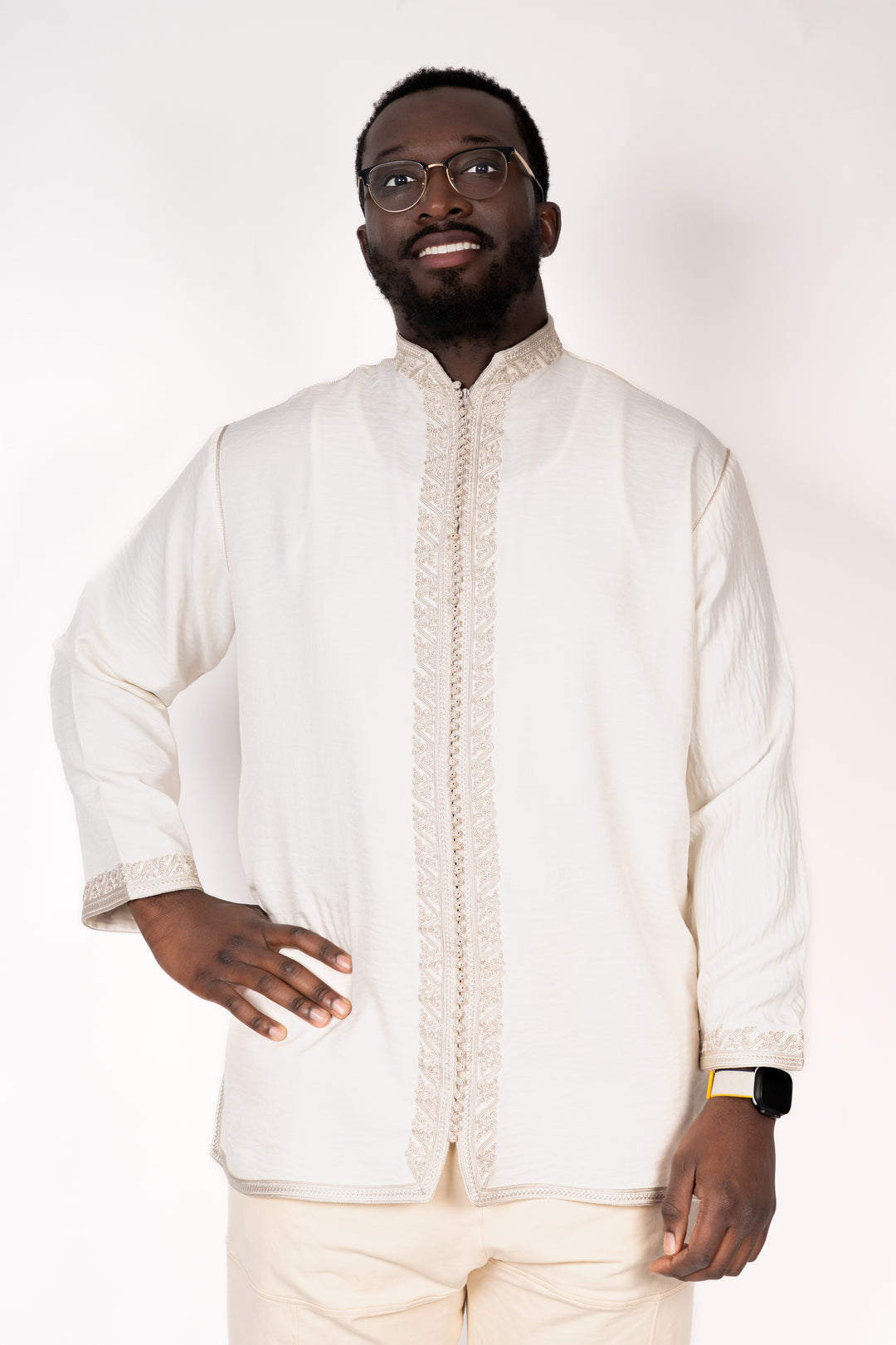 Zoom in to witness the delicate sfifa and beadwork that runs gracefully from collar to cuff.